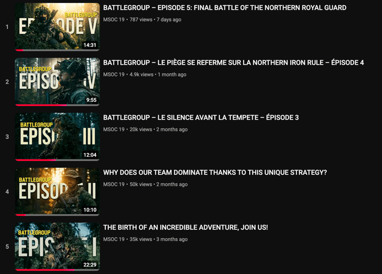 Je travaille avec la chaine YouTube MSOC19 pour produire des reportages d'airsoft ou des vidéos de mise en valeur de produits pour les marques.